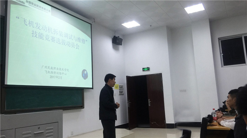第四届全国职业院校技能大赛“飞机发动机拆装调试与维修”赛项拟定于2017年5月中旬在我校举行。为确保赛项各项工作顺利推进以及我校参赛队伍取得理想的成绩,飞机维修工程学院积极开展筹备工作。2月15日晚,飞机维修工程学院在白云机场校区举行“飞机发动机拆装调试与维修”赛项参赛选手选拔会。飞机维修训练中心全体大赛指导老师在现场进行宣讲动员。