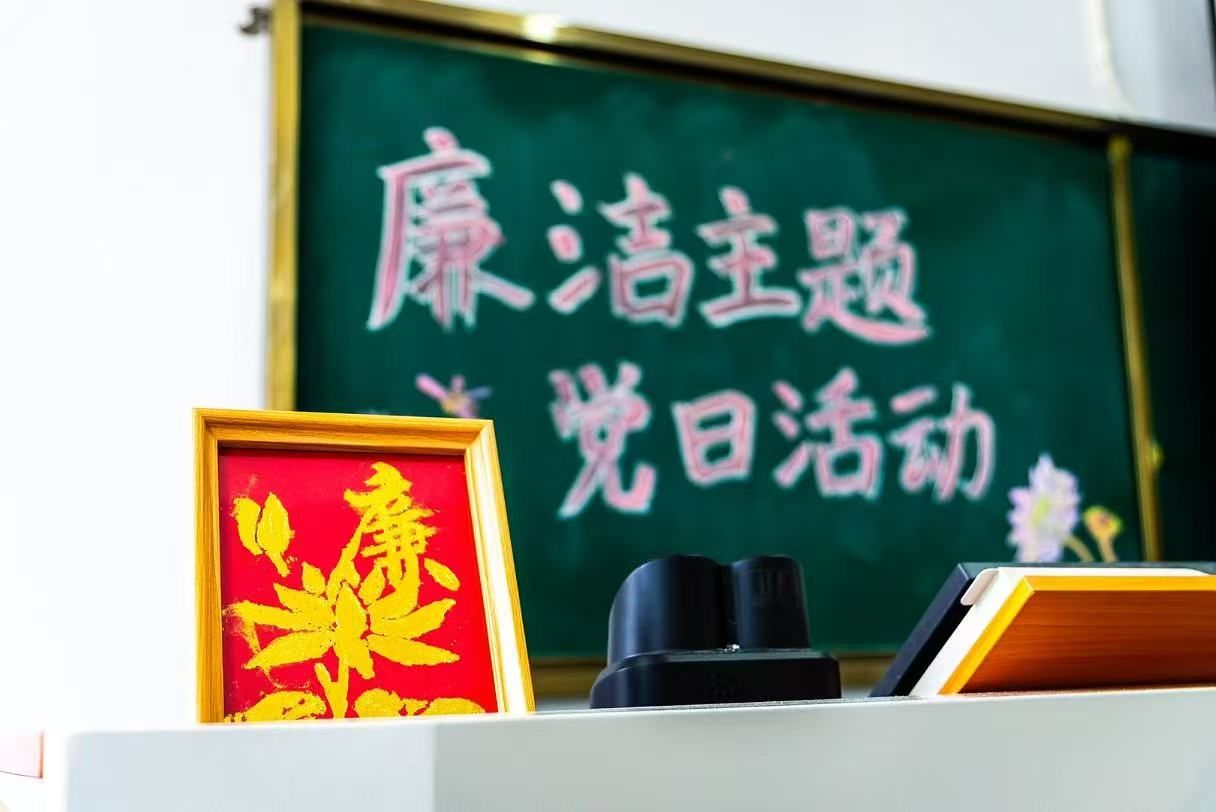 活动中,师生们一起进行了廉洁手工非遗金箔画制作,在传承非遗文化的同时将廉洁理念融入其中,用实际行动诠释了廉洁文化的内涵,赋予廉洁文化新的生命力,增强了参与感和体验感,使廉洁文化在师生们心中生根发芽。第三学生党支部借助本次教育活动契机,在各班级设置“学风监督员”,现场佩戴红袖章,以在日常学习中更好地起到对学生群体的示范引领和监督约束,全体学生共同宣读了《廉洁自律承诺书》,将共同创造和维护学院风清气朗的优良学风。