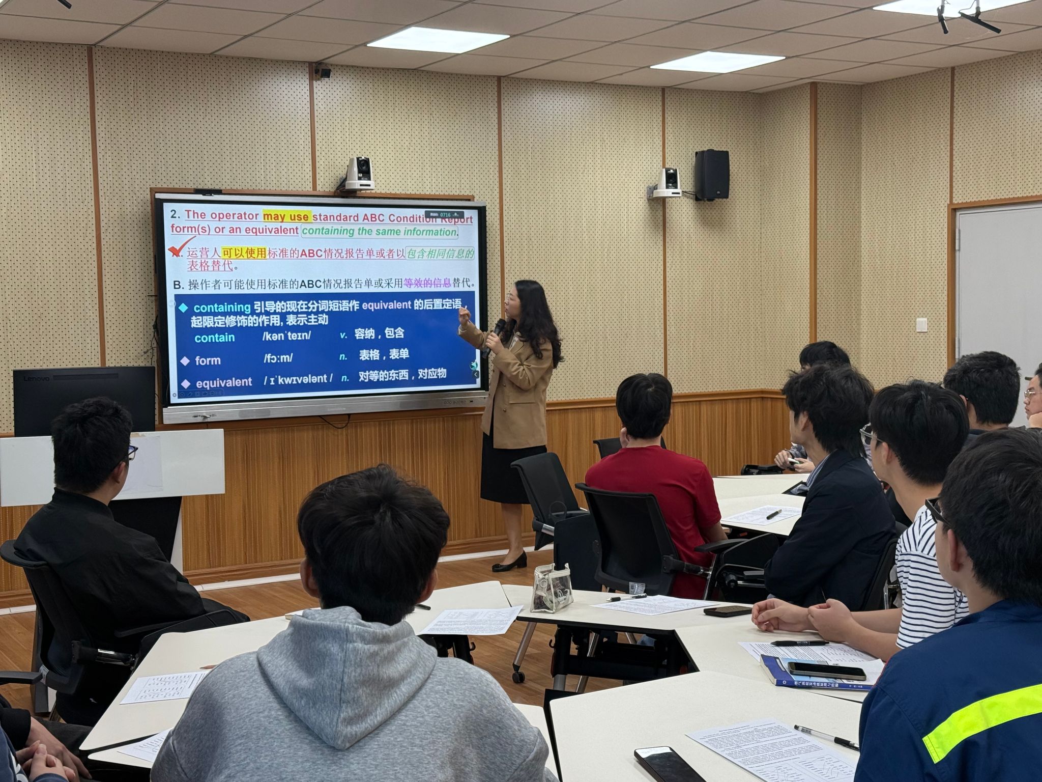 活动分为公开课展示与联合教学研讨两个环节。公开课环节中,机务专班教师代表为飞机维修工程学院大二年级学生代表讲授《科技英语语法与阅读》。授课内容紧扣民用航空器维修人员执照考试英语模块(以下简称M9)考核要求,通过科技英语文章阅读,重点讲解机务维修技术英语高频语法以及长难句阅读技巧。授课教师通过系统梳理句式结构、深入解析典型真题,有效引导学生掌握分析方法和解题策略。课程内容贴近行业实际,教学设计清晰,获得观摩教师(员)的一致好评。