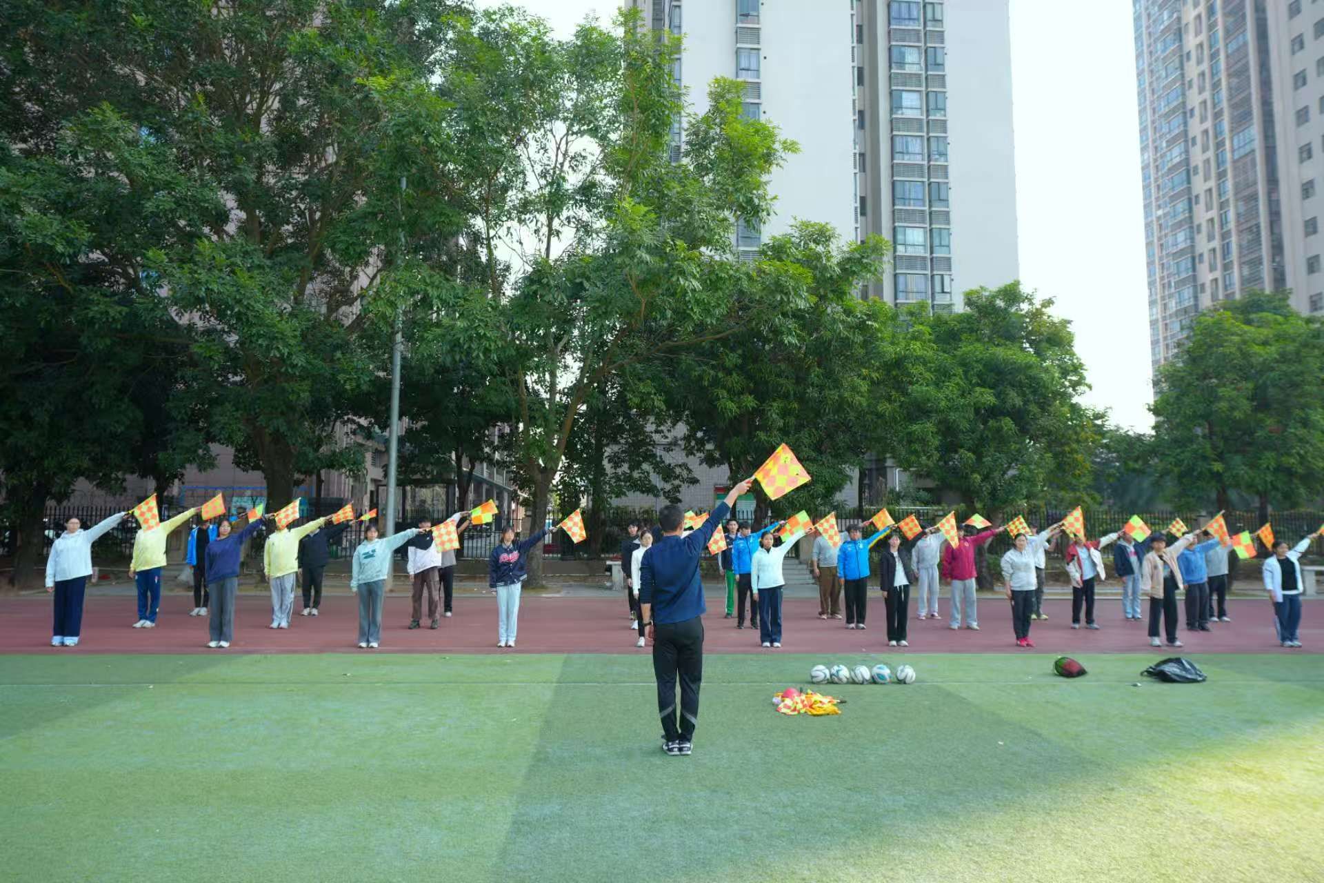 培训以“夯实基础、提升实操”为核心,沿用“集中面授+场地实践+视频案例考核+互动答疑”的多元模式,实现理论与实战深度结合。由我校公共基础教育学院国家级足球裁判员(现役中超联赛裁判员)贾志亮副教授领衔的专家团队,通过课件解析、赛事片段复盘,将复杂裁判规则通俗化;结合争议场景现场演示,拆解 “有利原则”“越位判罚” 等难点;同步传授校园足球赛事组织全流程技巧,助力参训教师快速夯实专业根基。结合粤西地区中小学足球活动特点,本期培训优化课程设置,新增“足球裁判示范演练”专题环节。参训教师在绿茵场上分组模拟比赛实况,演练裁判手势、口令及临场应对,专家团队全程跟踪指导,及时纠正细节,切实提升了教师们在实际教学与赛事组织中的执裁能力。参训教师普遍反映,本次培训内容务实、案例生动,既系统学习了裁判专业知识,也深化了对校园足球育人价值的理解,对日常体育教学和校内足球活动开展具有重要指导意义。