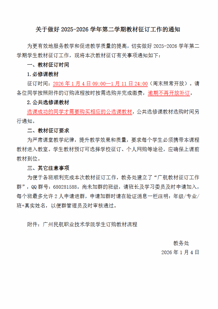 关于做好2025-2026学年第二学期教材征订工作通知