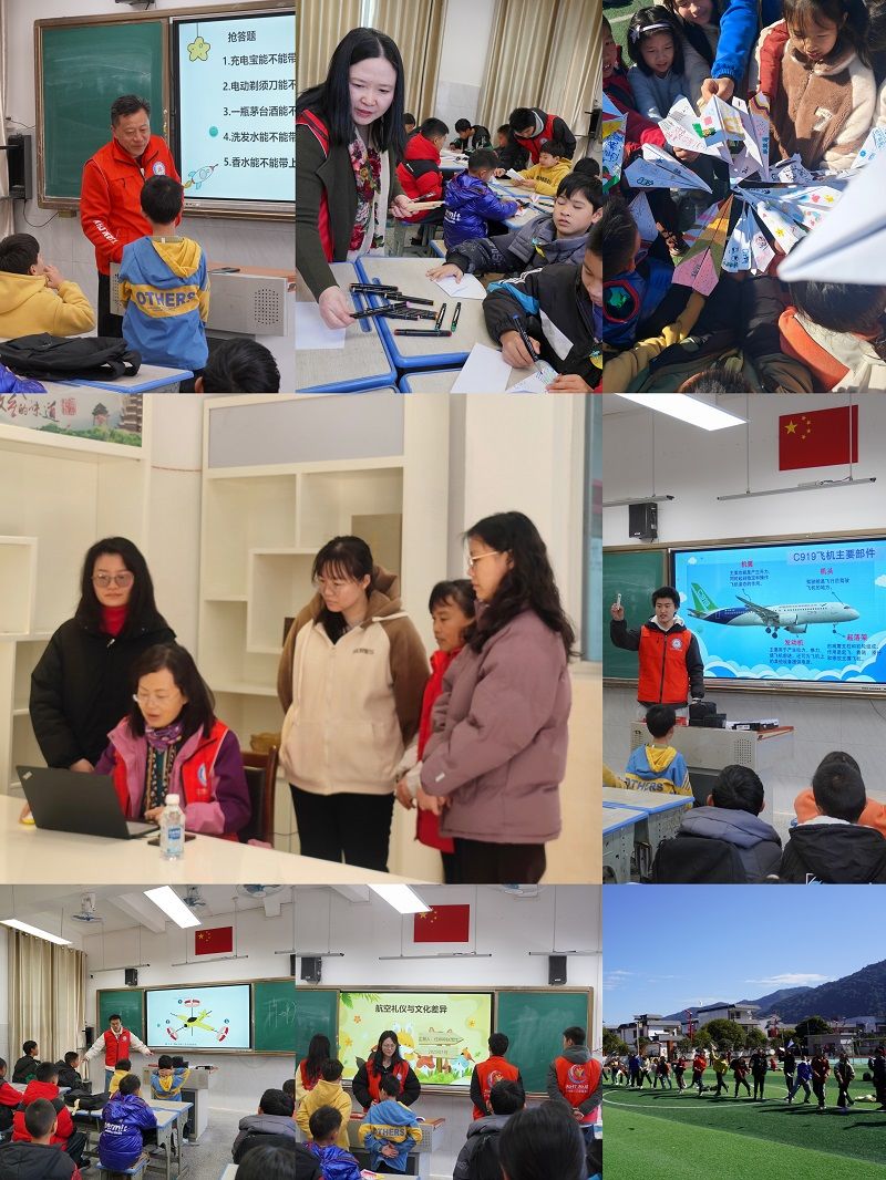 除了面向成人的无人机技术宣传推广与应用培训外,民航经营管理学院金蓉教授在瑶族乡强镇富村公司电商中心,为多位村干部作了“直播电商赋能 助力乡村振兴”主题培训。1月14日,航空港管理学院张宁老师与学生教员团队在瑶族乡民族学校,向来自始兴县多所中小学的研学班学生开展了乘坐飞机安检常识、航空知识科普、空乘礼仪等示范课,以及手绘飞机游戏活动和无人机飞行演示教学活动,累计共8场。