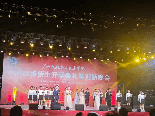 空港学院学生在迎新晚会上表演诗歌朗诵