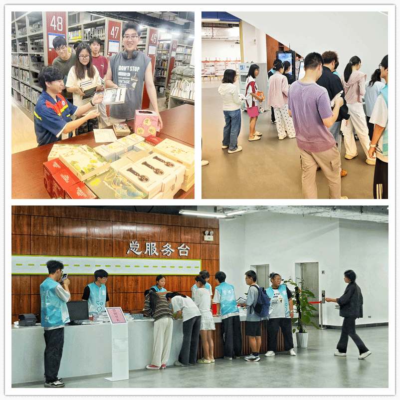 活动当天,图书馆内书香氤氲,人气高涨。“借阅有礼”活动率先点燃了师生们的阅读热情。读者们穿梭于书架之间,精心挑选心仪的图书,借阅机前更是排起了长龙。为鼓励阅读,图书馆精心准备了精美书签、笔记本套装、手持风扇、马克杯等多种实用且富有文化气息的礼品。据统计,活动当天图书馆图书借阅量高达1081册,充分展现了师生们高涨的阅读积极性。