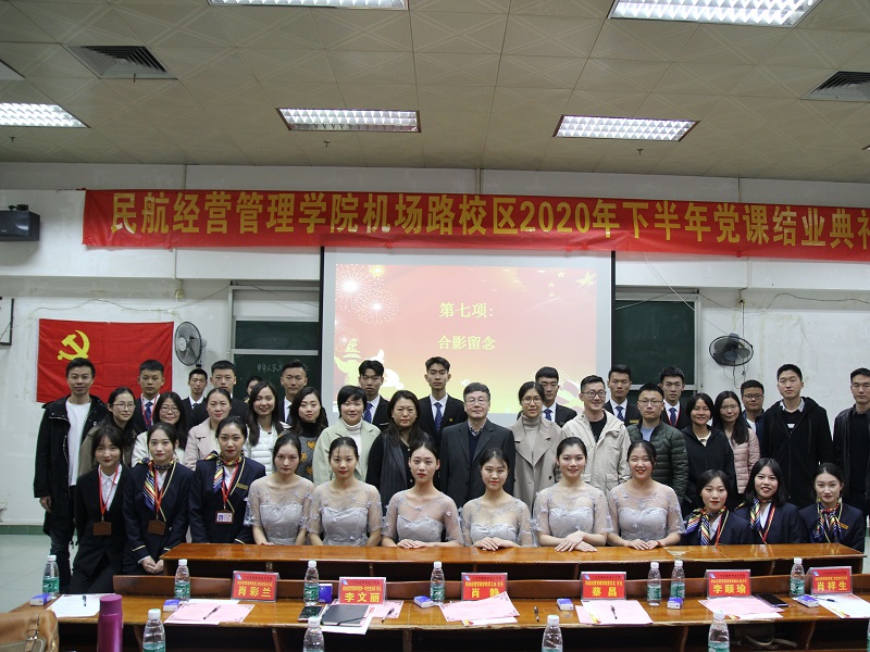 1月6日下午,民航经营管理学院在机场路校区综合楼阶梯三教室举行2020年下半年党课结业典礼暨入党积极分子学习成果汇报会,学院党总支蔡昌书记,学工办肖静主任,党政办李顺瑜副主任,学生党支部书记李文丽、肖祥生、肖彩兰老师,全体辅导员和2020年下半年入党积极分子培训班全体学员参加了结业典礼。