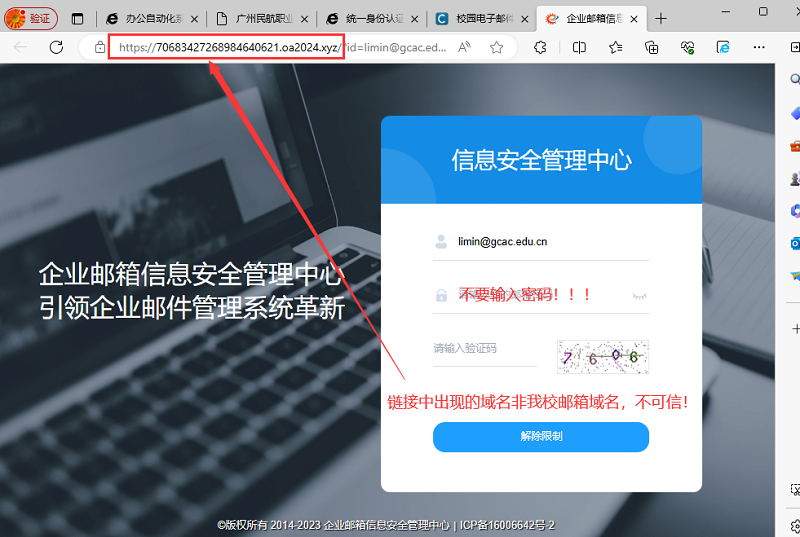 此类邮件可窃取师生的身份认证账号、口令及其他个人信息,也可能是黑客对我校目标系统展开攻击前信息收集的手段。现提醒各位师生提高网络安全意识,注意防范,保护个人信息安全。
