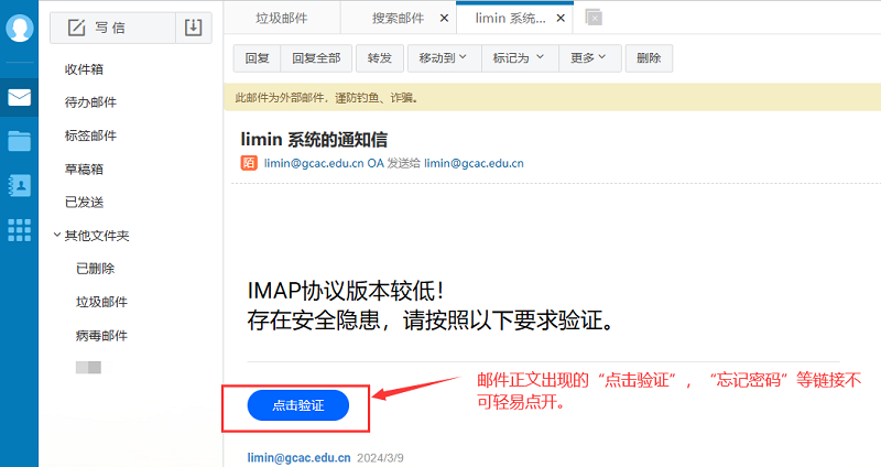 1、垃圾邮件文件夹的邮件不要轻易点开。
