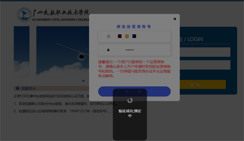 特别提醒:一个用户只能绑定一个运营商账号,一旦错绑只能凭身份证件去校园网服务中心解绑。