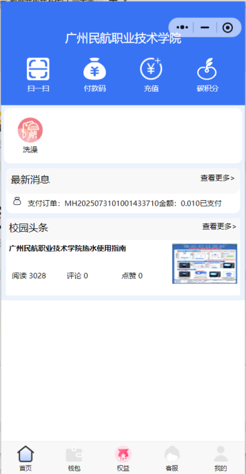 1、首次使用,请使用微信扫一扫(二维码如下图1),或搜索“广州民航职业技术学院一卡通”小程序