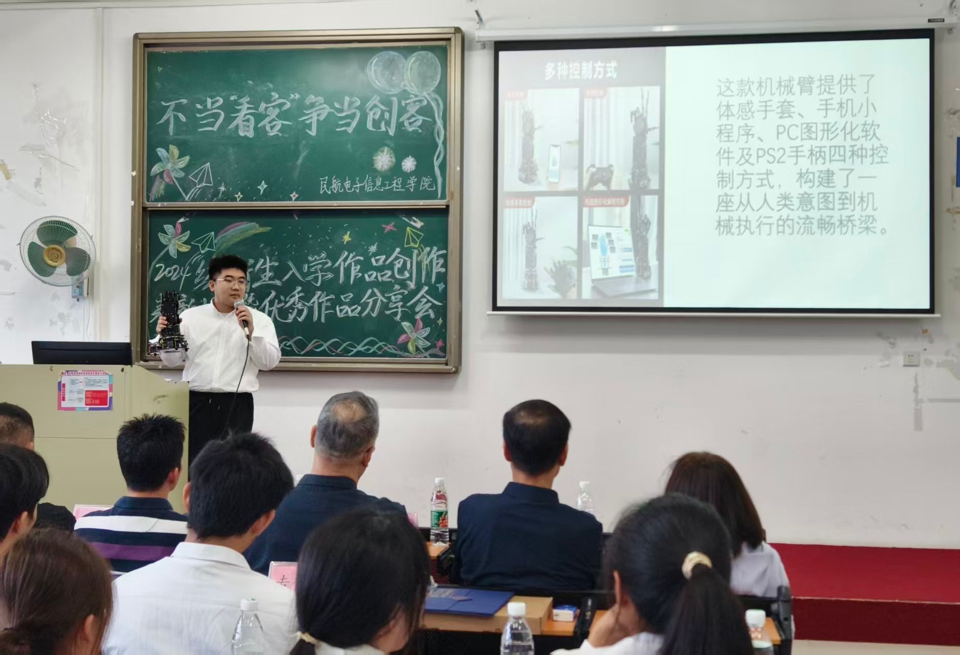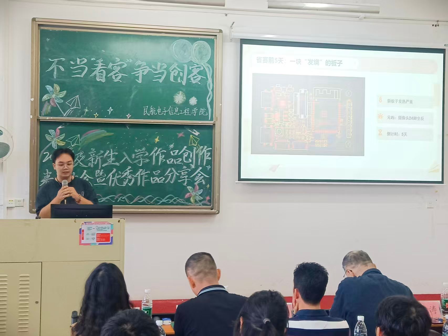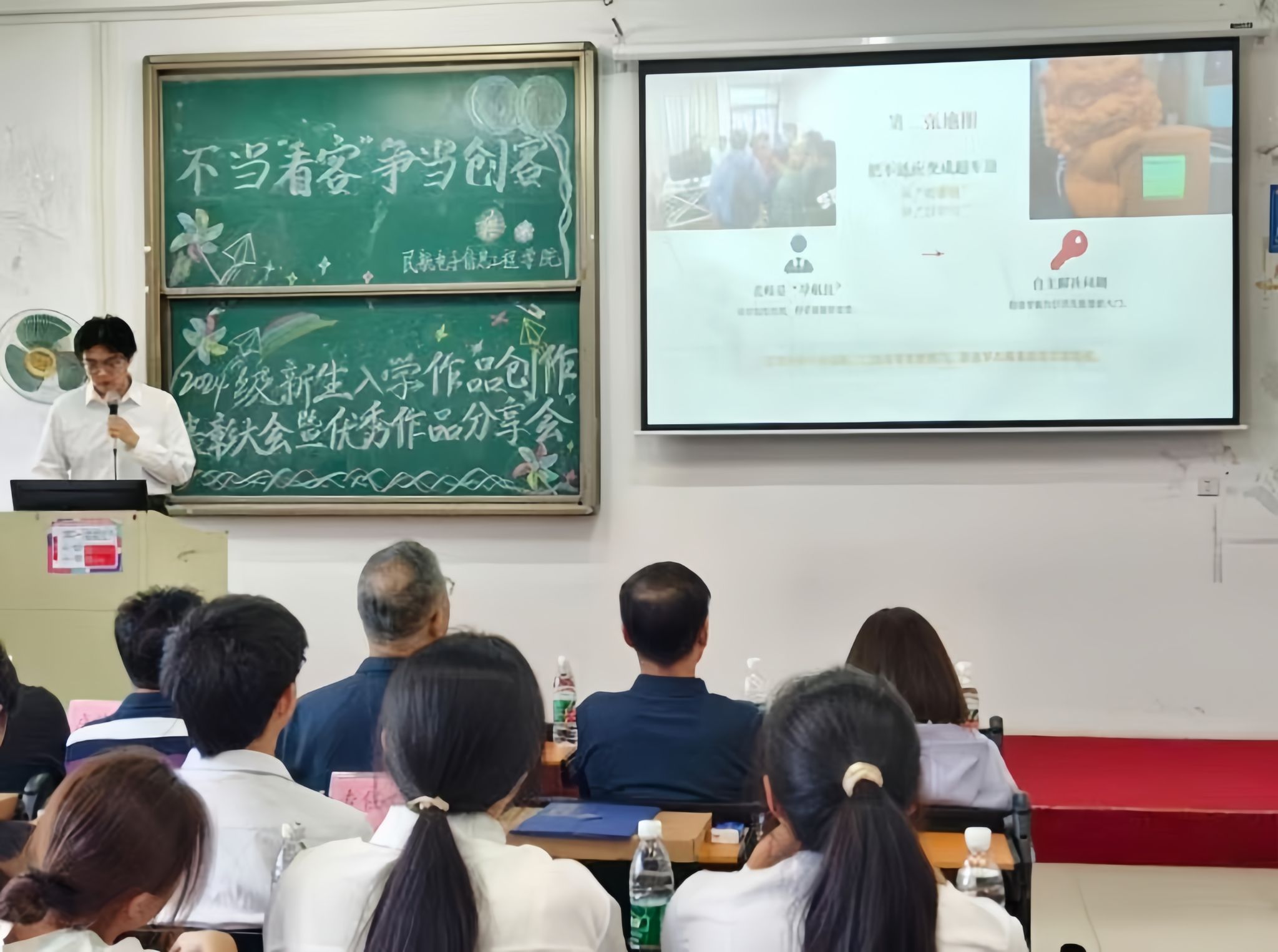 11 月 5 日,民航电子信息工程学院在赤坭校区 K3-209 召开 2024 级新生入学作品创作表彰大会暨优秀作品分享会。集中展示了“红领创客——学生优秀作品创作工程”的丰硕育人成果,为电信学子们的创新实践之旅开启生动开篇。