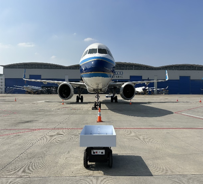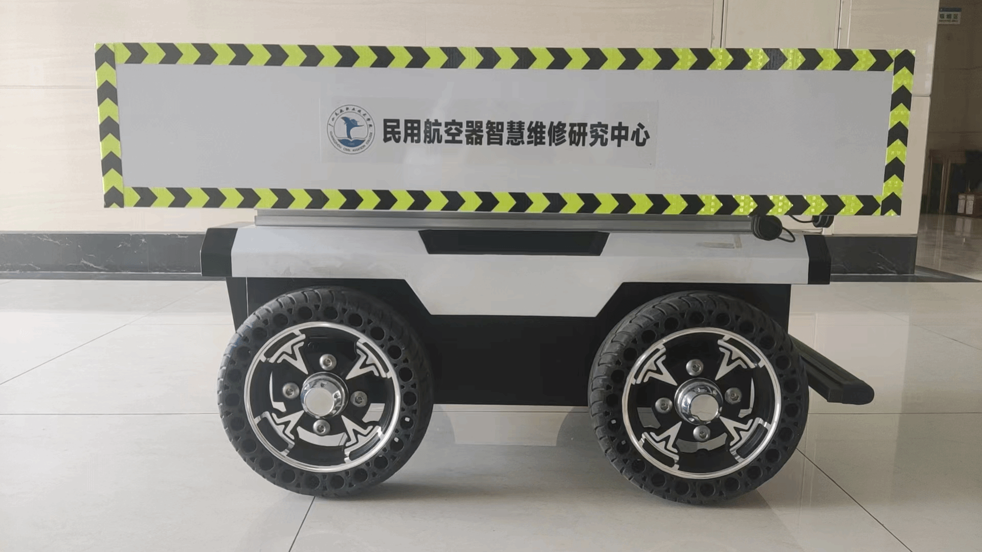 基于ROS机器人操作系统,中心研发了额定载荷为80kg的飞机维修智能配送机器人,通过编写算法和优化调试,样机成功实现了从室内工具房到室外停机坪400多米距离的自主往返配送。
