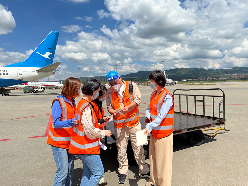 项目团队走访了位于昆明长水机场的云南机场地面服务有限公司、云南空港物流股份有限公司、东方航空云南有限公司集中配载中心和西双版纳嘎洒机场地服部,实地调研了两个机场货物装卸的工作流程、复核方式、人员培训、风险管控及信息传递等情况。
