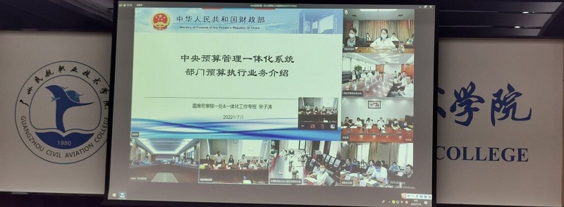 为贯彻落实上级部门平稳有序实施预算一体化的工作要求,加快熟悉预算一体化预算执行操作,7月19日,学校在机场路校区综合楼101会议室参加了民航局财务司主办的面向民航单位的预算一体化预算执行专题线上培训会,学校计划财务处和国资处相关人员参加了培训会。