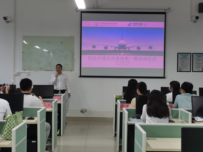 7月6日上午,我校与广东南航电子商务有限公司校企共建实训基地第一期启动仪式在花都赤坭校区L5-408隆重举行,仪式由民航经营管理学院綦琦副院长主持。