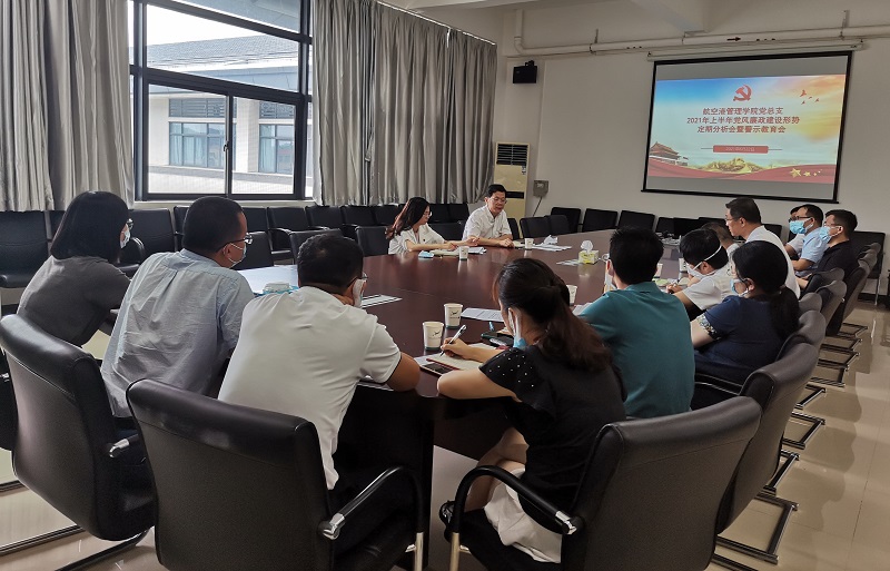 6月22日上午,航空港管理学院党总支部在赤坭校区L1-516召开了2021年上半年党风廉政建设形势定期分析会暨警示教育会。学校党委徐戊填副书记、纪检监察处郭晖云处长,航空港管理学院党政领导班子成员、三办一中心负责人、下设各党支部书记、纪检委员以及新入职教职工参加了会议。会议由党总支书记高文会主持。