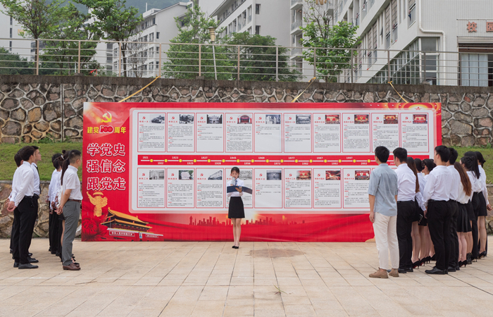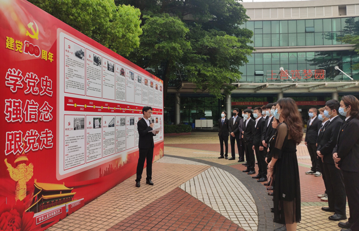 为扎实推进团员青年党史学习教育,引导广大青年学生厚植爱党、爱国、爱社会主义的情感,让红色基因、革命薪火代代传承,6月23日下午,团委在机场路校区、白云机场校区、花都赤坭校区开展了“学党史、强信念、跟党走——光辉的历程”图片展活动。学校涂卫军副校长、党办晏玉珍主任、党办宣传科陈群辉科长,团委全体人员及部分团员青年代表近100人参与本次活动。