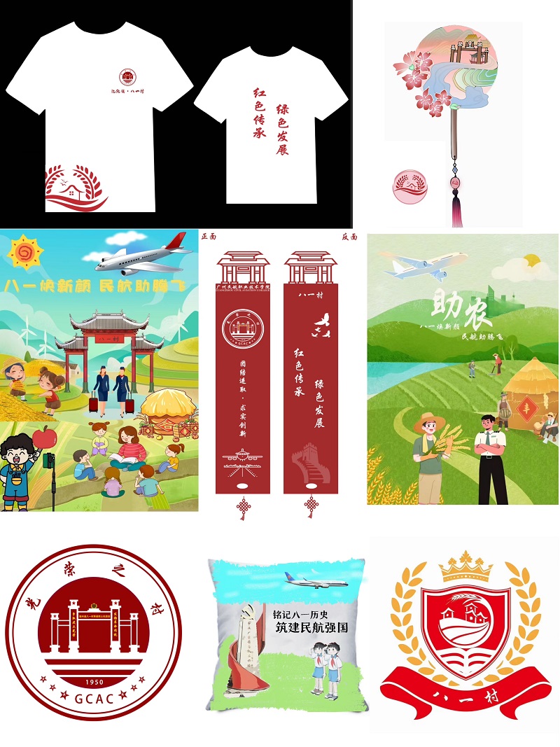 本次比赛以“八一焕新颜 民航助腾飞”为主题,结合一年来我校与八一村“百千万工程”结对工作所取得的成果,通过整合创新创意要素,设计联名文创产品,为八一村特色文化IP提供艺术产品化解决方案。经公共基础教育学院英语教学部与八一村评委的共同评审,共评选出获奖作品37项,其中特等奖2项、一等奖6项、二等奖10项、三等奖19项。2023级大数据与会计2班董壮壮、2023级飞机部件修理4班王威同学的作品《八一村·广航联动logo及文创产品》(指导老师:曹子瑄)以及2022级民航运输2班凌佳欣、陈静雯同学的作品《八一村乡村振兴系列文创——传承红色革命精神,共助八一乡农振兴》(指导老师:谢晓霞)获特等奖。