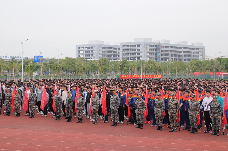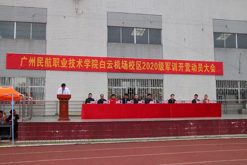 动员大会开始,全场起立,奏唱国歌。会上首先由飞机维修工程学院党总支部书记方松作军训动员讲话。他指出军训是大学教育的一门必修课,也是人生的重要一课。通过军训可以增强同学们的国防观念和国家安全意识、增强组织纪律观念,大力弘扬爱国主义精神、培养艰苦奋斗的作风,提高学生综合国防素质。方书记也表达了对荔湾区人民武装部官兵的感谢之情,并向全体参训学生提出了做好疫情防控、端正军训态度、服从指挥管理、认真参训的要求,希望大家在军训中树立良好的集体荣誉感、严格要求自己、刻苦训练,用积极的心态激励自己感染他人,圆满的完成军训任务。接着,学校保卫处刘刚老师宣读《广州民航职业技术学院新生军训守则》,强调军训期间的纪律要求。随后,2020级飞机电子4班旷煌辉代表新生发言,他代表全体新生向学校和教官做出“做好疫情防控、听从指挥、积极训练”的承诺,大家坚定信念迎难而上,用昂扬的斗志争创佳绩。
