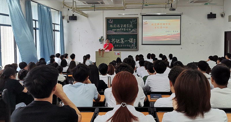 3月31日下午,航空港管理学院党总支部高文会书记在花都赤坭校区K3-208教室为2019级入党积极分子讲授了“书记第一课”。
