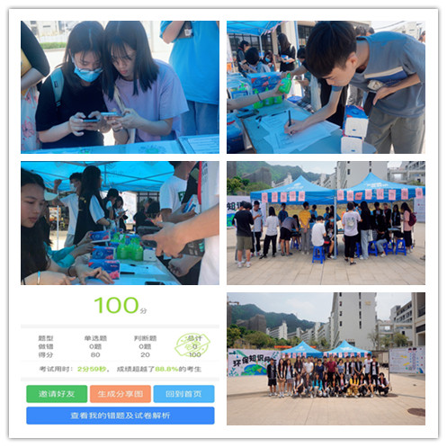 此次活动面向花都赤坭校区全体师生,积极引导师生认识环境现状,普及环保知识,增强环保意识,大力提倡“从自己做起,从小事做起,携手保护家园”。活动分为环保知识宣传、有奖知识问答两个环节。参与人员现场通过手机扫描二维码,进行十道有关环保知识的问答。得分80分以上三等奖,90分以上二等奖,100分一等奖。活动吸引了师生近300人次参与,受到了师生一致好评。