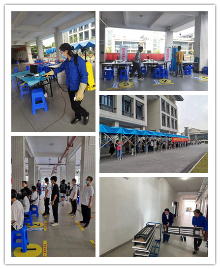 为做好疫苗接种的组织工作,后勤管理处高度重视、认真准备,制定了详细的工作方案,严格按要求组织实施,确保了疫苗接种工作顺利完成。一是高度重视,充分认识疫苗接种工作的重要性。多次与赤坭镇镇政府、赤坭镇卫生院工作人员对接种现场进行查勘,与校办、学生处、教务处等部门协调配合。二是精心部署接种现场。组织物业、保安人员、宿管会干部提前做好K1架空层的清洁消杀、搬运设备、布置现场、设备调试和安全保卫等工作,确保场地干净卫生、消毒到位、设置合理。三是做好后勤保障,现场提供桶装水、白糖水,督促食堂按疫苗接种后饮食清淡的要求,更换菜品。