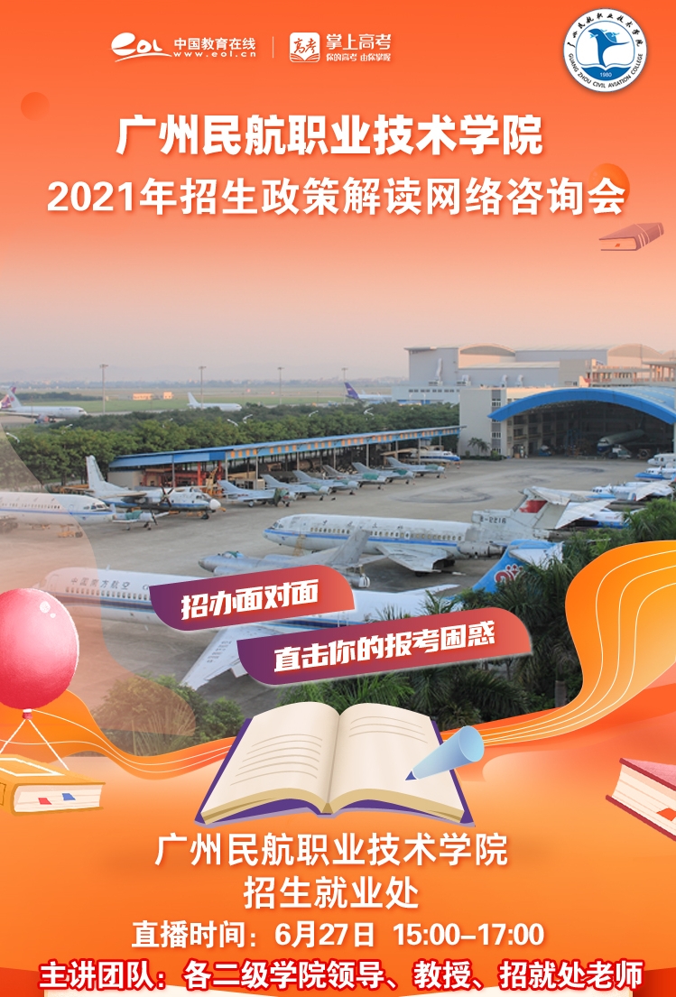 6月27日下午,在飞机维修工程学院、民航经营管理学院、航空港管理学院等二级学院配合及中国教育在线技术支持下,我校招生就业处组织策划举办了两场大型的招生政策解读网络直播咨询会。