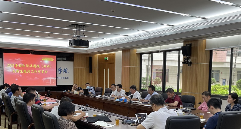 招生就业处通报了2021年招生工作情况,分析了明年生源专业选择趋势。五个二级学院及相关参会处室领导作发言。