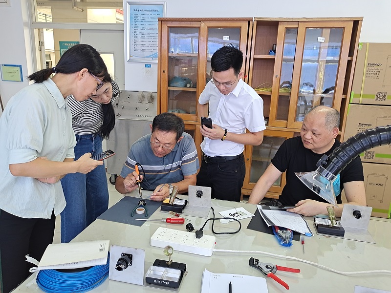 教研活动通过“以老带新”的方式,由具备丰富行业工作经历的刘晓光老师主讲。刘老师基于自己多年的工作经验,从施工安全、行业标准、技能要点等多维度,对CCAR-66R3内新增的“焊接连接器与终端”技能点进行了讲解与现场示范。同时,各任课老师针对课时安排、重点难点等与刘老师共同研讨,以期提升教学质量。最后,大家对自行设计的连接器焊接平台进行了实际操作,并提出了后期改进意见。