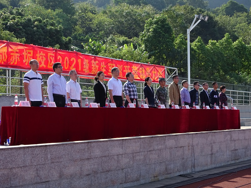 10月19日上午,广州民航职业技术学院花都赤坭校区2021级军训开营动员大会在田径场举行。出席本次大会的有学校纪委书记王乐,广州市白云区人民武装部陈立生领队,学校相关职能部门领导,二级学院领导,全体教官以及2021级全体辅导员和新生。大会由航空港管理学院学工办李英主任主持。