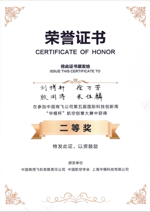 决赛中,我校参赛队伍经过自我介绍、作品介绍、回答专家提问等环节,对参赛作品《下一代先进宽体干线客机“风鹏”设计梗概》进行了全面的展示,最终获得团体第三名的好成绩,荣获二等奖。此次比赛指导教师为袁忠大老师,参与学生为我校飞机维修工程学院刘搏轩、米佳麟等同学,我校为第一参与单位。