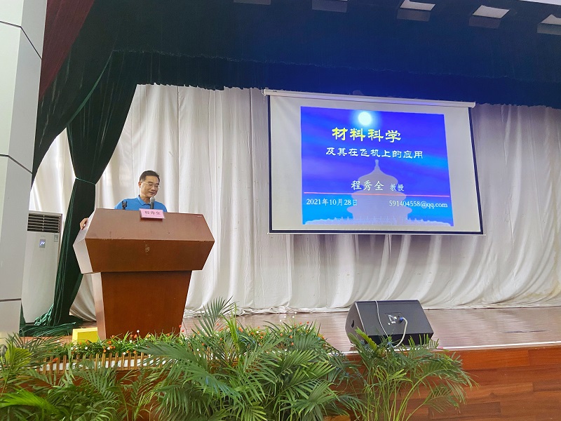 10月28日下午,飞机维修工程学院邀请校内专家程秀全教授在白云机场校区报告厅举办了“机务大讲堂——材料科学及其在飞机上的应用”专题讲座。2021级330余名新生参加讲座。讲座由辅导员李敏慧主持。
