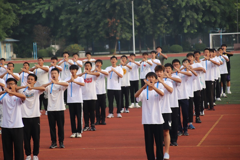 大会在雄壮的国歌声中拉开了序幕。首先进行的是军训成果演练。在分列式中各连队迈着整齐有力的步伐,喊着清脆嘹亮的口号,依次通过主席台。接着进行军体拳、刺杀操、匕首操、反恐战术演练、飞机指挥操等军训成果表演,各方阵动作整齐划一,全体同学进行飞机指挥操的场面宏伟壮观。同学们用坚毅、自信的表现向自己和学校交出满意的军训答卷。