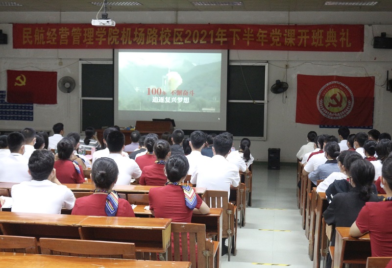 11月3日晚,民航经营管理学院在机场路校区综合楼阶梯三教室举行了2021年下半年入党积极分子培训班开班典礼。党总支蔡昌书记、李爱琴副书记等相关领导老师以及本期培训班全体学员参加了典礼。