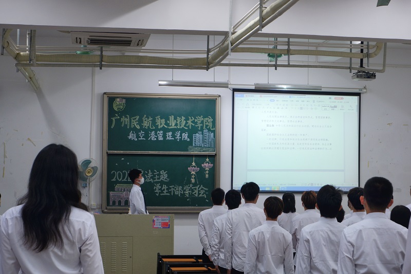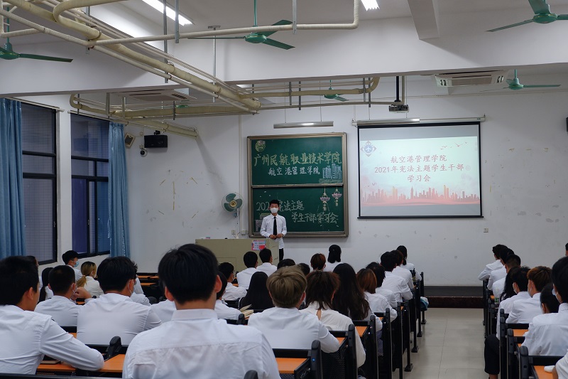 为更好推进“宪法宣传周”系列活动,2021年11月25日下午,航空港管理学院在花都赤坭校区K3-208对在校学生干部进行了宪法主题培训。