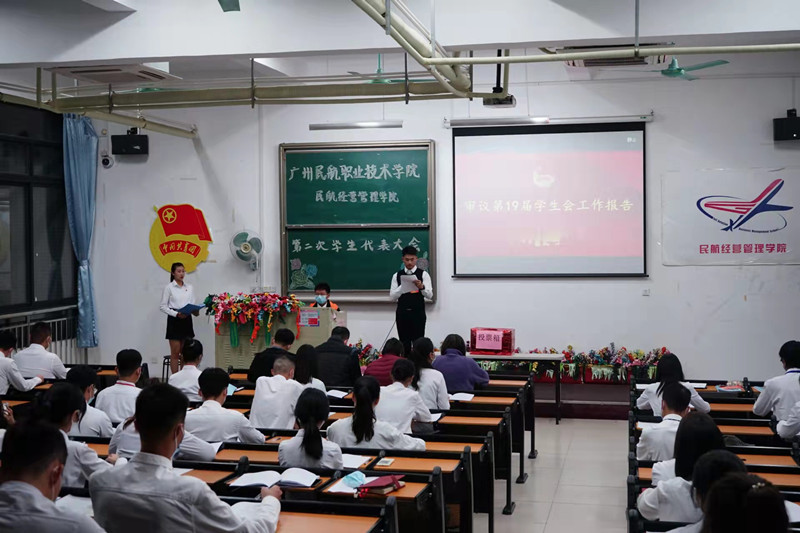 本次大会分为两个阶段,在预备会议阶段,与会代表依次听取了学生代表大会筹备工作报告,审议并通过大会议程、代表资格审查报告、学生代表大会主席团名单;预备会议结束后,正式会议在庄严的国歌声中正式拉开了帷幕。会议上,122名与会代表审议并通过了广州民航职业技术学院民航经营管理学院学生会章程草案、第19届团总支学生会工作报告、大会选举办法、总监票人、监票人和计票人名单,选举并产生了广州民航职业技术学院民航经营管理学院第20届团总支学生会主席团成员。大会完成各项既定议程后,在嘹亮的团歌声中顺利闭幕。