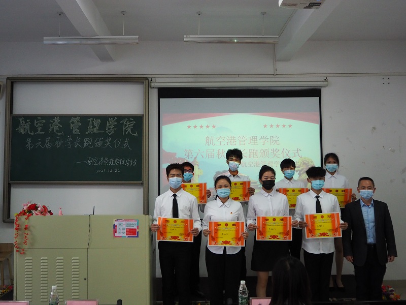 12月22日下午,航空港管理学院在花都赤坭校区K2-202举办了秋季长跑活动颁奖仪式。出席本次颁奖仪式的有航空港管理学院党总支裴大明副书记、学工办李英主任、学工办曾秀华副主任、团总支所有老师、学生会志愿者和领奖学生代表。