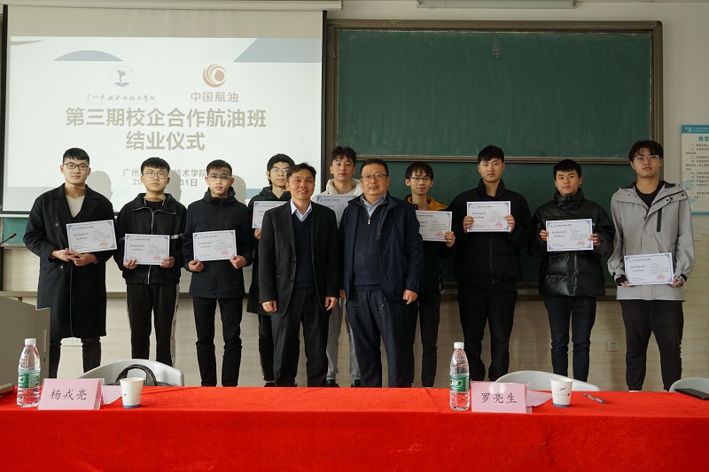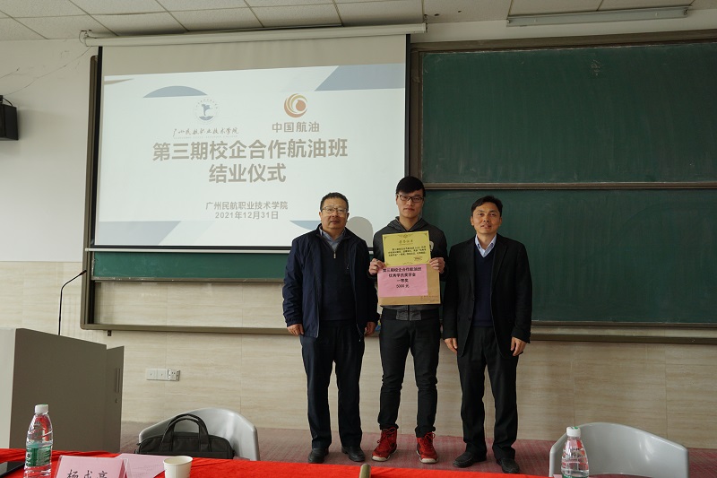 2021年12月31日上午,第三期校企合作航油班理论培训结业仪式在我校顺利举行。华南蓝天航空油料有限公司人力资源部经理杨戎亮、学校继续教育学院院长罗亮生参加结业仪式。