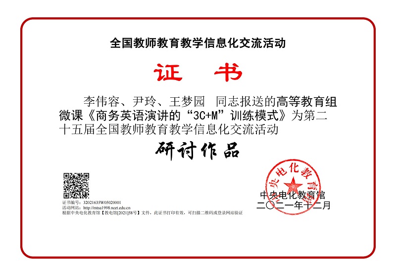 近日,由中央电化教育馆主办的“第二十五届全国教师教育教学信息化交流活动”落下帷幕,我校人文社科学院英语教学部李伟容副教授团队、银珊老师团队的作品双双入选为该项活动的研讨作品。全国教师教育教学信息化交流活动已举办多年,为省部级教师竞赛项目,近年取消了获奖等级,入选作品根据内容的不同分为研讨作品、创新作品、典型作品等,集中体现了我国教师教育教学信息化的水平。