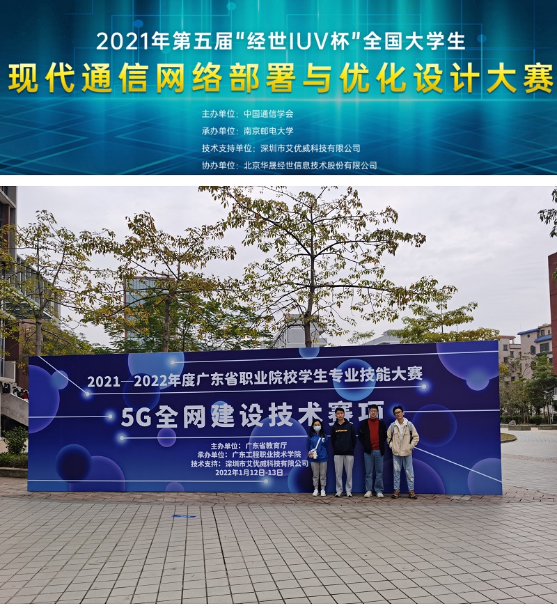 2022年1月11日至13日,由广东省教育厅主办、广东工程职业技术学院承办的2021—2022年度广东省职业院校学生专业技能大赛—“5G全网建设技术”赛项在广州举行,广东省内32所高职院校共64支队伍参加了此次比赛。航空港管理学院四位学子,张晓峰、李佩佩和刘辉诗、陈俊先组成的两个代表队获得2个二等奖,创造了我院参加该赛项的最好成绩。