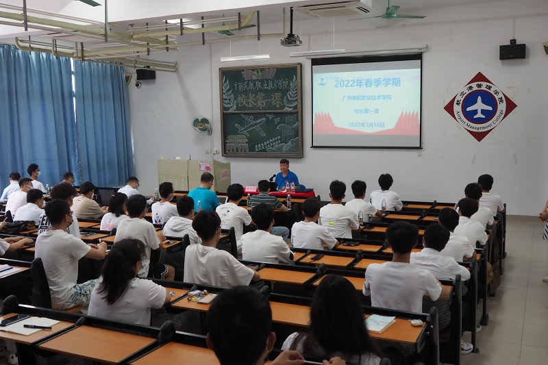 为深入学习领会党的十九届六中全会精神,深入贯彻中办、国办印发的《关于深化新时代学校思想政治理论课改革创新的若干意见》精神,落实立德树人根本任务,2022年3月16日上午,广州民航职业技术学院解根怀校长在花都赤坭校区K3-203,为2021级民航通信技术专业学生讲授主题为“以史为鉴、开创未来,走好新时代的赶考之路”的思政第一课。人文社科学院(思政部)、航空港管理学院相关领导、老师按照疫情防控要求就坐聆听。