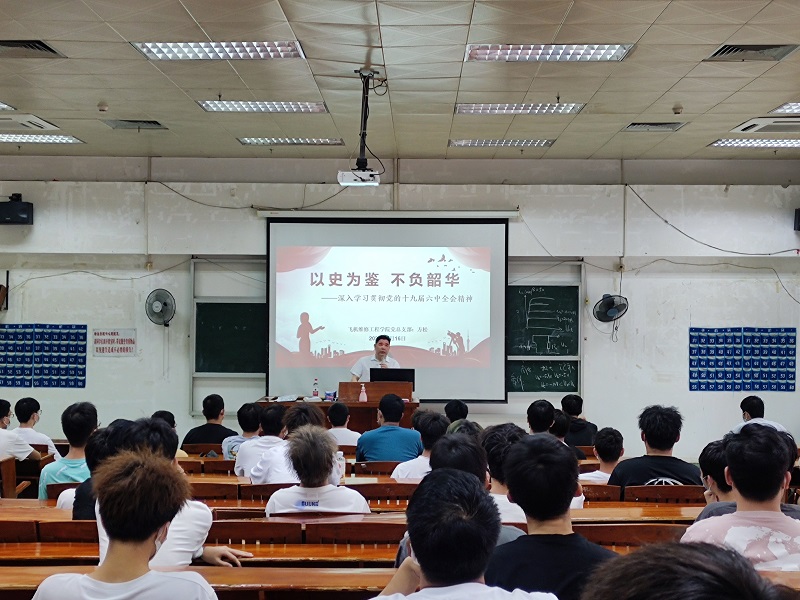 张建超院长带领同学们开展十九届六中全会精神专题学习。他首先给大家介绍了十九届六中全会的主要精神和概况,以及中国共产党的发展历史。着重为同学们讲解了《中国共产党第十九届中央委员会第六次全体会议公报》内容,他结合我国目前的国情、现状以及所处的国际形势,全方位、多角度地分析介绍了中国共产党在百年历史发展的四个时期中的重大奋斗成就,以及当前所面临的机遇和挑战。最后,张院长从学习、安全、纪律、生活、就业等方面对大一学生们提出了要求,号召同学们要有坚定的理想信念,有志气、勤奋进取,争做一个有计划、有目标,为建设民航强国而努力奋斗的青年人。