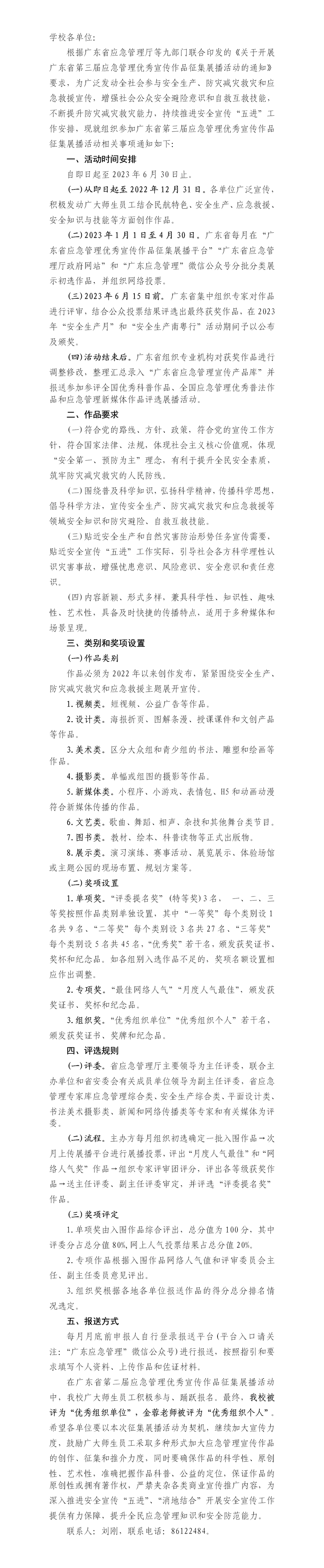 关于组织参加广东省第三届应急管理优秀宣传作品征集展播活动的通知