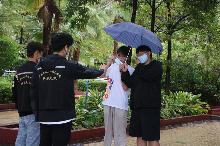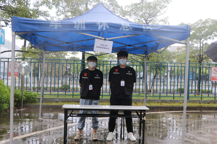 自10月13日因疫情防控校园实行封闭管理以来,保卫处根据校园疫情防控专班要求,认真做好白云机场校区疫情防控各项工作,守牢校园疫情防控关口,确保校园平安稳定。一是在校园围墙周围设立固定值班点,护校大队学生利用课余时间定点执勤,防止学生私自翻越围墙出入;二是在校道、教学楼、宿舍楼等人员密集区域设立值班点,提醒师生员工佩戴口罩,做好个人防护;三是组织护校大队学生常态化进行校内巡逻,加密巡逻频次,及时发现疫情防控及校园安全隐患;四是继续做好校园各项安全工作,持续推进防范电信网络诈骗宣传与提醒,积极开展各类隐患排查,确保政治、消防等各类校园安全。