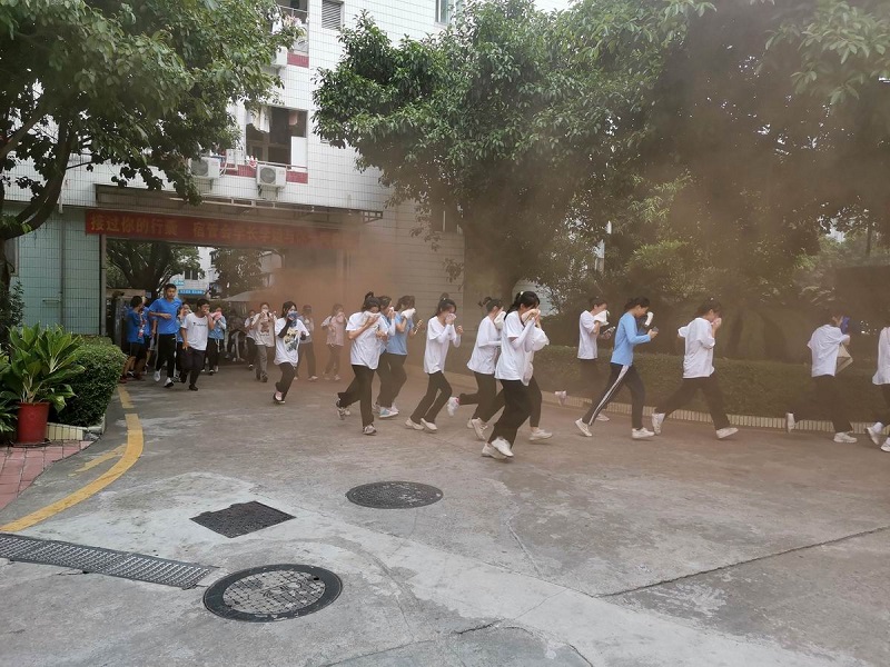 在应急疏散演练活动中,同学们情绪饱满,积极参与,待教官一声哨响,宿舍浓烟滚滚,同学们迅速到位,快速有序地通过各个安全通道疏散到指定位置;紧接着通过20秒有序穿越烟雾帐篷的训练,让同学们体验了一次惊心动魄的火场逃生,整个演练活动安全有序。