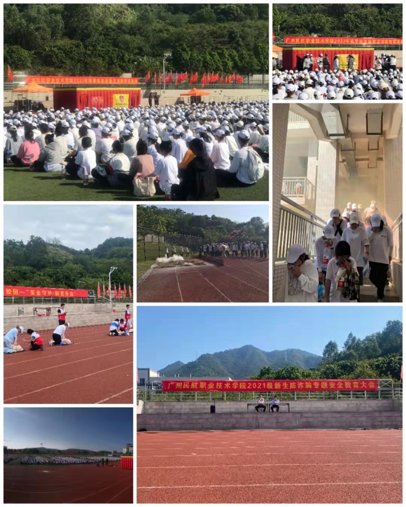 一是根据秋季学生军训活动疫情防控工作的要求,在军训开展前,学校卫生所对2021级新生进行了卫生与健康教育,明确军训前、军训中的各方面防疫要求和应急处置;二是保卫处邀请了赤坭派出所甘警官再次给2021级新生开展防诈骗教育,他例举九月份发生在赤坭校区的诈骗案例,起到了很好的警示作用;三是邀请广东药科大学附属第一医院周华岳医生来我校开展了一场“安全守护•救在身边”应急救护培训,整个培训不仅通过理论进行讲解,同时运用10个仿真人实操指导同学们如何在紧急情况下帮助病人进行心肺复苏等,教学持续了两个半小时,学生们都轮番上阵进行实际操作;四是2021级新生在军训团教官的指导下学习了应急疏散的流程和要领,并进行了一次从宿舍有序疏散到运动场的演练活动;五是保卫处治安消防科邀请了广东粤消安应急管理中心的老师对新生和学校员工讲授了消防安全知识,并展示如何使用灭火器和防毒面具,培训结束师生们根据学习掌握的方法实际操作使用灭火器灭火和防毒面具。