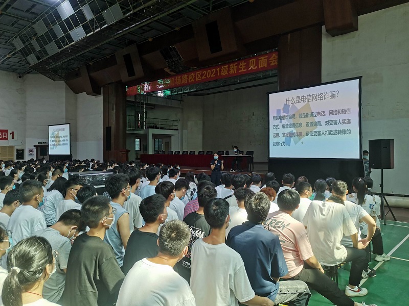 为进一步增强大一新生的法律知识和自我防范意识,有效提高同学们的反诈防骗能力,9月11日下午,学校邀请白云公安分局“云安宣讲团”一行,在机场路校区体育馆为2021级的同学们带来了一场精彩的“防范电信网络诈骗”专题讲座。