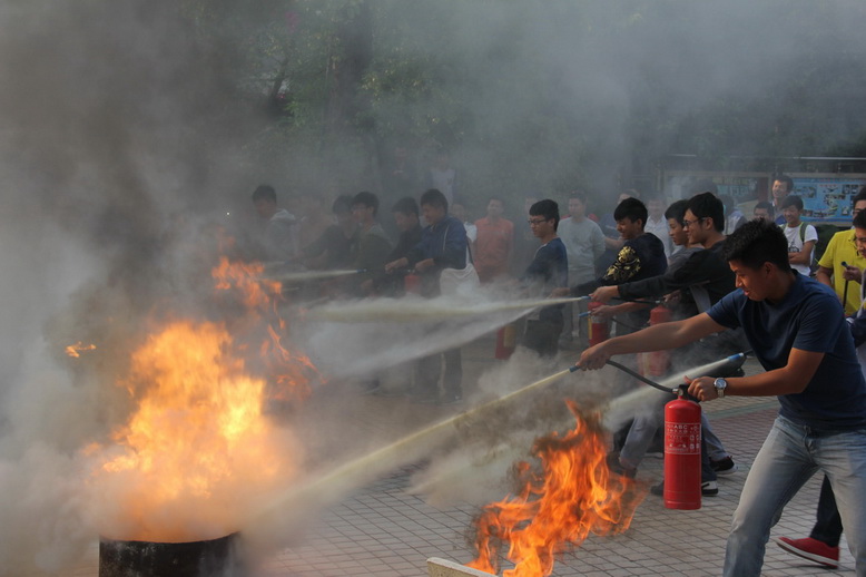 三、培训演练,群防群治。11月5日至26日,我校邀请广州市基安消防中心的专业教员在新老校区分别开展了9场消防安全知识培训与2场灭火演练活动。全体学管线干部、2014级新生、以及物业、饭堂员工等4000余人参加了此次培训与演练活动。在培训中,教员用触目惊心的视频及图片向我们揭示了各类重大火灾事故的发生情况以及火灾造成的严重后果;用生动的语言详细讲解了火灾事故的预防、处理方法以及如何正确使用消防器材,并亲身示范演示了几类实用的火场逃生方法以及如何避免错误的逃生手段,几场培训下来,大家受益匪浅。在演练活动中,师生们情绪饱满,积极参与,待警报一声鸣响,参与人员手提灭火器迅速到位,瞬间将“大火”扑灭,整个演练活动安全有序地顺利完成。