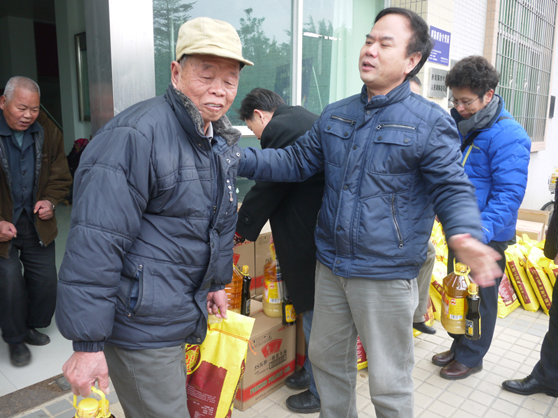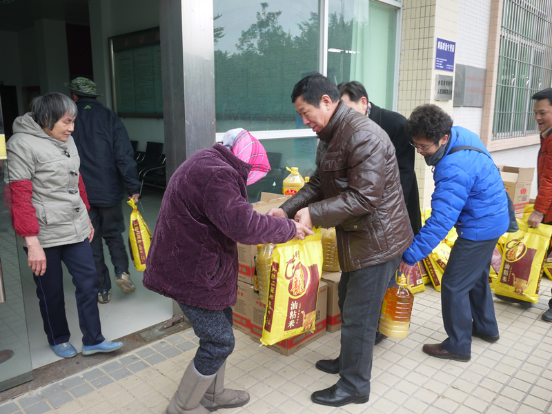 剑岭村和锦山村毗邻我校花都赤坭校区,在赤坭校区建设、搬迁与启动运行期间,赤坭镇政府、剑岭村和锦山村村民对我校工作给予大力支持和帮助。为了更好的落实我校与赤坭镇党委、政府联席会议的精神,积极协助剑岭村和锦山村村委落实“促民生、保稳定”的政策,学校购买了大米、食用油等生活物品送至两村81户困难党员、低保户、低收入家庭、五保户手中,并与村民们亲切交谈,让他们在寒冬里感受到了我校党委的关怀和浓浓的情谊。