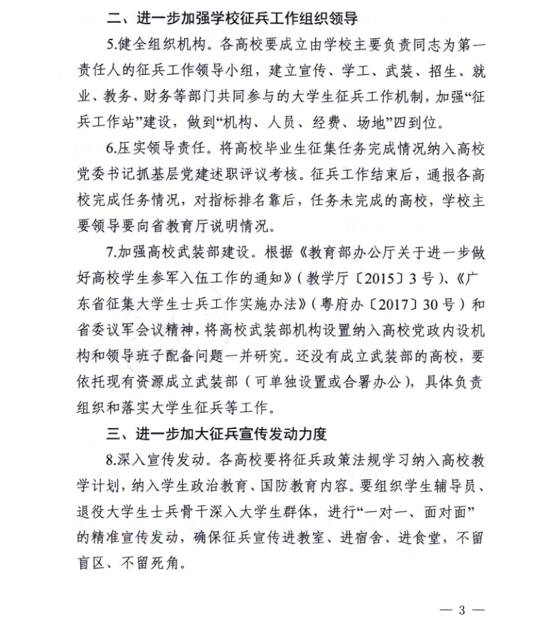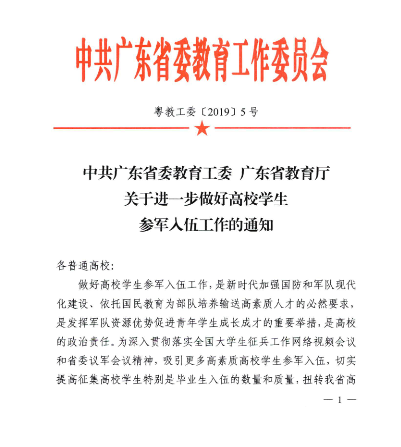 转发《中共广东省委教育工委 广东省教育厅关于进一步做好高校学生参军入伍工作的通知》