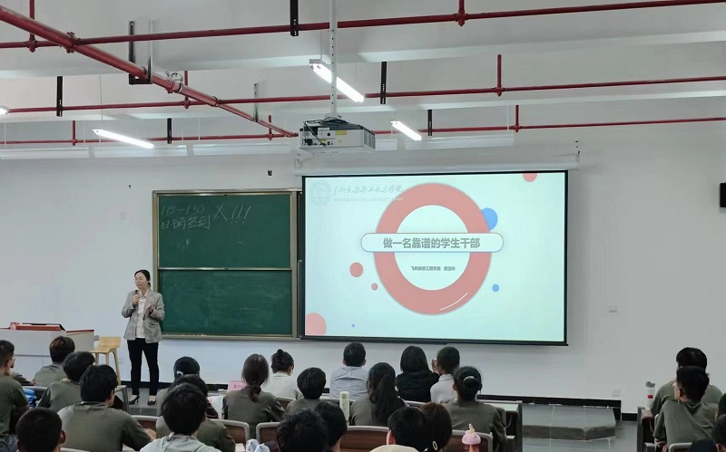 为提高学生干部综合素质、增强学生干部组织管理能力,10月23日中午,飞机维修工程学院2023年学生干部培训班开班典礼在赤坭校区K5-302举行。学院学生会干事、新生班级干部及督导大队等300多名学生参加了开班典礼,飞机维修工程学院黄白玲副院长出席并讲授开班第一课。